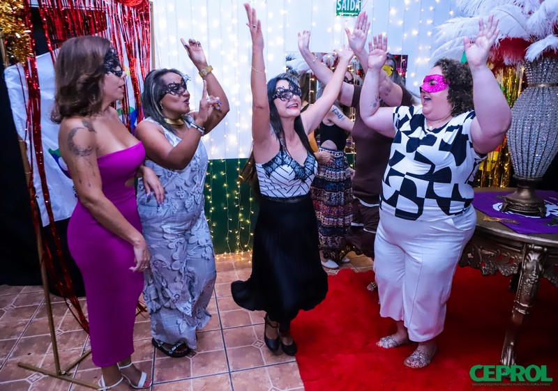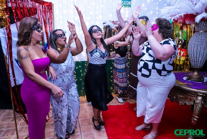 Cada sorriso, cada máscara criativa, cada dança, cada momento especial foi registrado e revela a alegria de estarmos juntas nesta noite merecida de festa 🎭✨