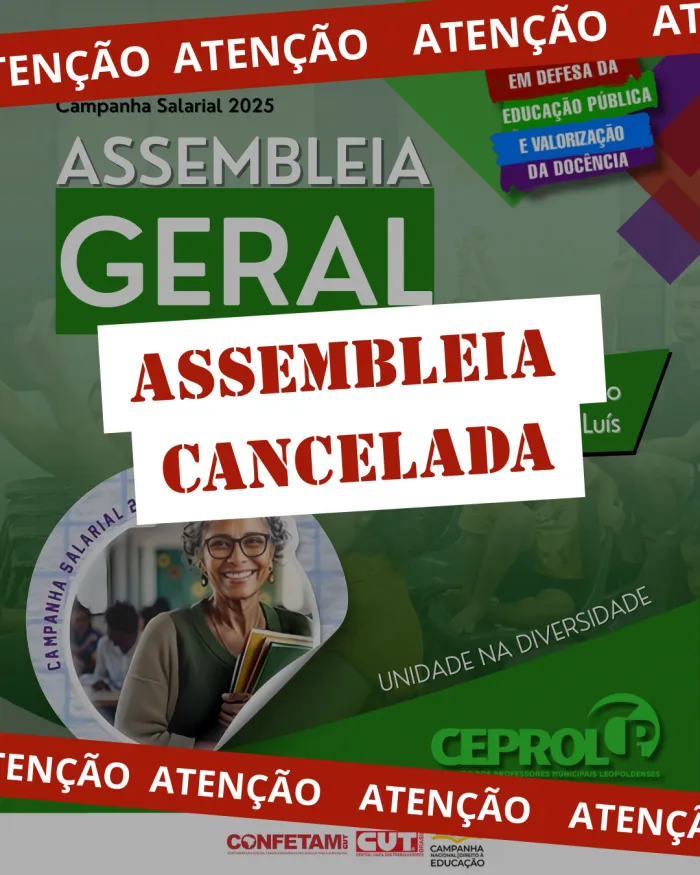 ATENÇÃO! 🚨A Assembleia Geral da categoria está CANCELADA!A comissão de negociação REJEITOU a proposta do Governo Municipal que não respeitou as pautas históricas da educação e nem cumpre as Leis: Piso Nacional do Magistério, Estatuto dos Servidores, Data-Base e reajuste MENOR que a inflação.A proposta REJEITADA inclui:1,7% referente ao Piso... Leia mais