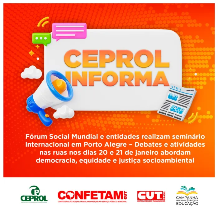 Fórum Social Mundial e entidades realizam seminário internacional em Porto Alegre – Debates e atividades nas ruas nos dias 20 e 21 de janeiro abordam democracia, equidade e justiça socioambientalO Seminário Internacional Democracia, Equidade... Leia mais