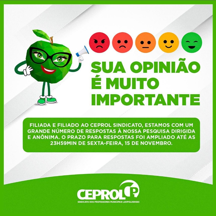 👍Responda a pesquisa de opinião do CEPROL Sindicato respondendoa 10 perguntinhas rápidas (+ 1 optativa) e colabore para melhorar as ações do sindicato.✅Respostas até às 23h59 de quinta-feira, dia 14/11/2024.ACESSE: CLIQUE AQUI Leia mais